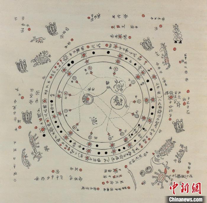 中国贵州省水书文献《吉星·星象图》。 (贵州省黔南州档案馆供图)