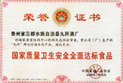 九阡酒 民间俗称“九仙酒”,是水族民间传统工艺制作的保健饮品,是按水族民间传统药方,采集130多种地产药材制成酒曲,选用地产优质摘糯为原料酿制而成。色泽棕黄,醇香馥郁,天然淳正,酒性平和,清新淡雅,余味悠长。并具有强身健骨、劫风去湿、滋阴壮阳、延年益寿之功能。同时,对多种妇科杂症有独特之疗效。1957年,九阡酒间登上国庆宴会大雅之堂,敬爱的毛主席、周总理饮过此酒后,连声称赞为好酒。