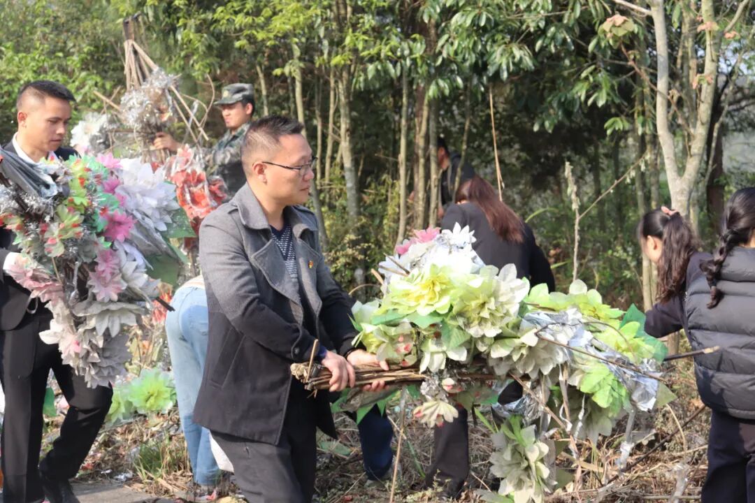 活动最后,党员干部们撸起衣袖,认真清扫烈士陵园落叶、移除杂物、擦拭墓碑,以实际行动表达对革命先烈的敬仰之情。