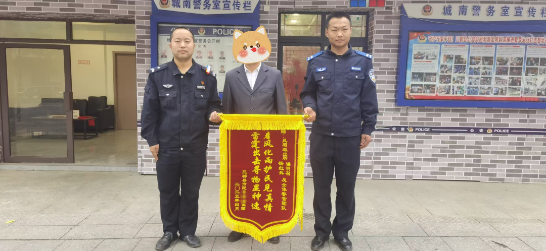 当失主看到失而复得的贵重物品时,激动得热泪盈眶,连声对民辅警表示感谢。并特意制作了一面锦旗,亲手送到了派出所。