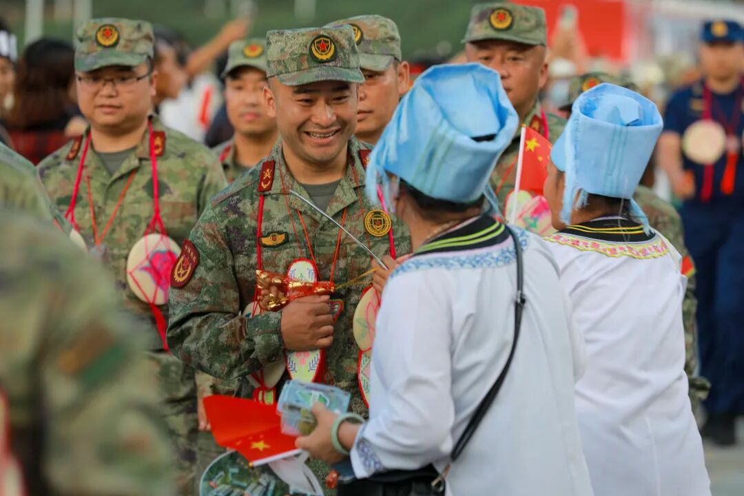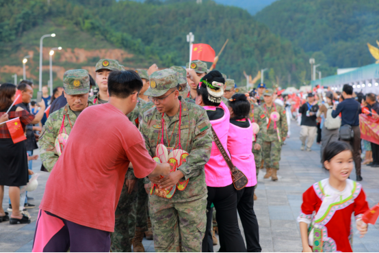 感恩入场仪式更是将活动推向了一个小高潮。武警官兵消防方阵、州直部门方阵、水电路讯医疗方阵等依次入场,他们迈着整齐的步伐,精神抖擞。